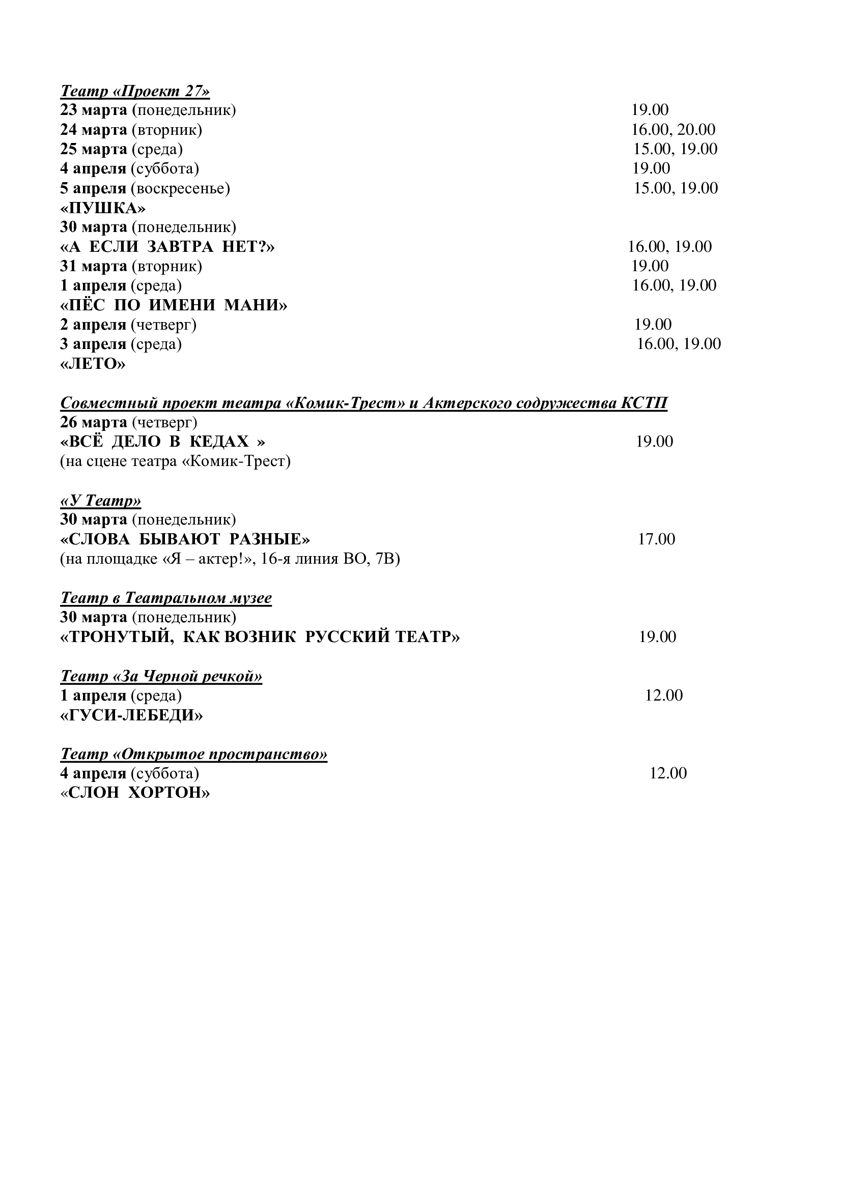 Предупреждаем всех потенциальных зрителей, что на этот день никаких мероприятий в Доме актера у нас не запланировано и не проводится!!!